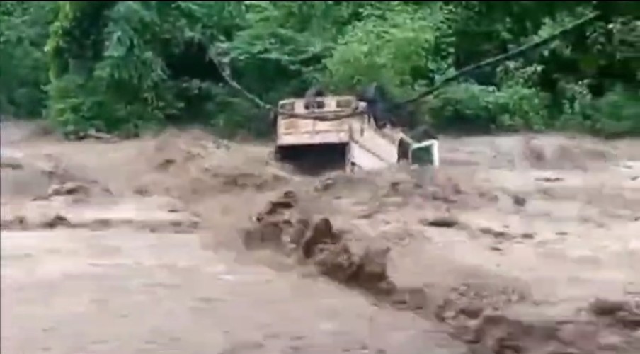 उत्तराखंड में यहाँ बरसाती नाले में बहा पिकअप वाहन,ड्राइवर ने तैरकर बचाई जान…….