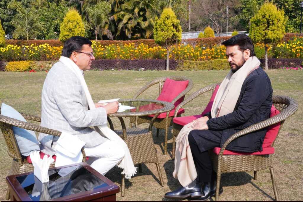 उत्तराखंड में मुख्यमंत्री धामी से सांसद अनुराग सिंह ठाकुर ने की शिष्टाचार भेंट………