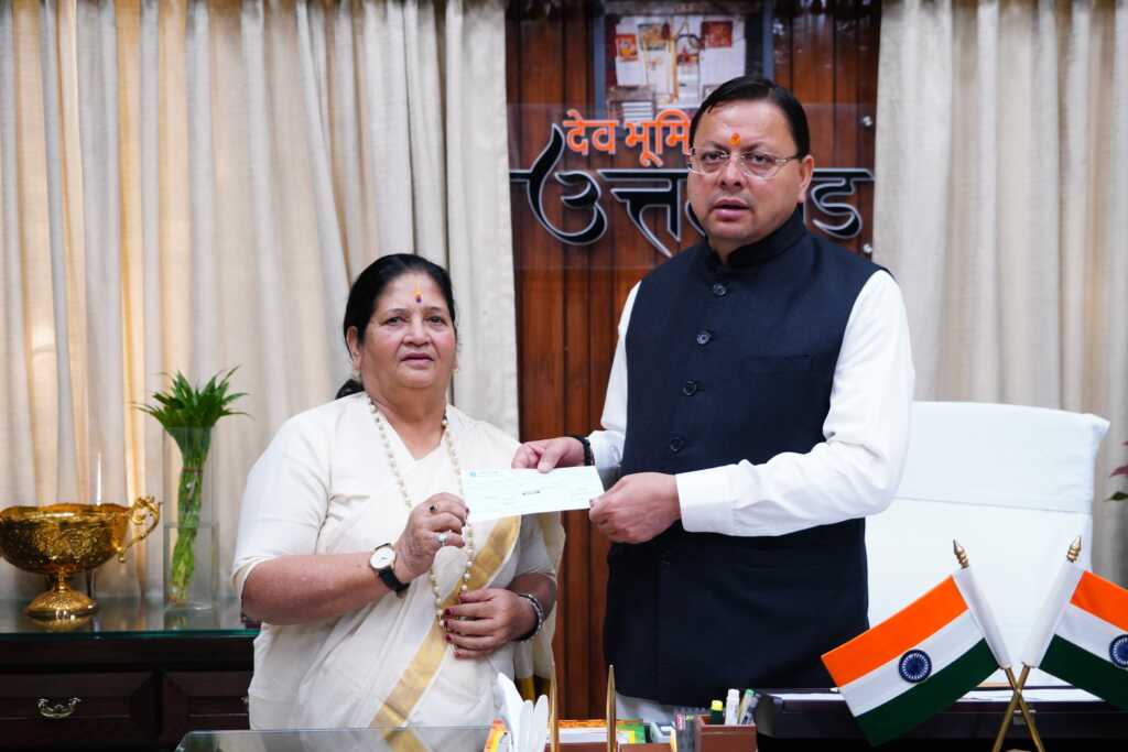 देहरादून: प्रसिद्ध पर्वतारोही एवं पद्मभूषण सम्मान प्राप्त बछेंद्री पाल ने शनिवार को मुख्यमंत्री राहत कोष के लिए 10 लाख रुपए का चेक प्रदान किया। यह चेक उनकी ओर से राज्य महिला उद्यमिता परिषद की उपाध्यक्ष श्रीमती विनोद उनियाल द्वारा मुख्यमंत्री को सौंपा गया।