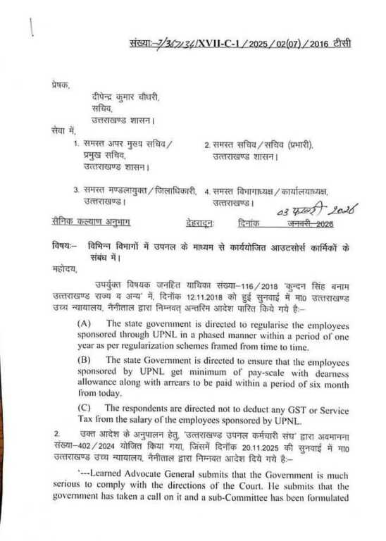 उत्तराखंड में आज उपनल कर्मियों के लिए आ गया ये आदेश देखिए……..
