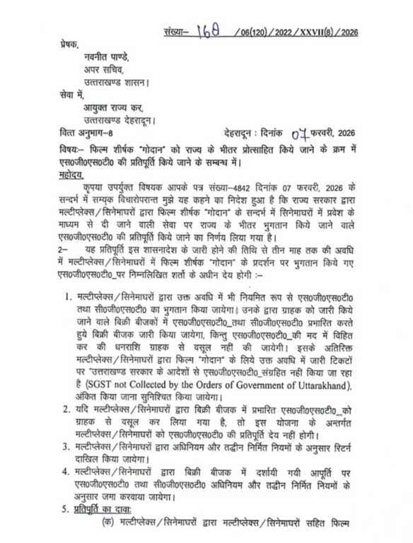 उत्तराखंड में मुख्यमंत्री धामी के निर्देश पर फिल्म ‘गोदान’ को टैक्स फ्री, शासनादेश जारी……