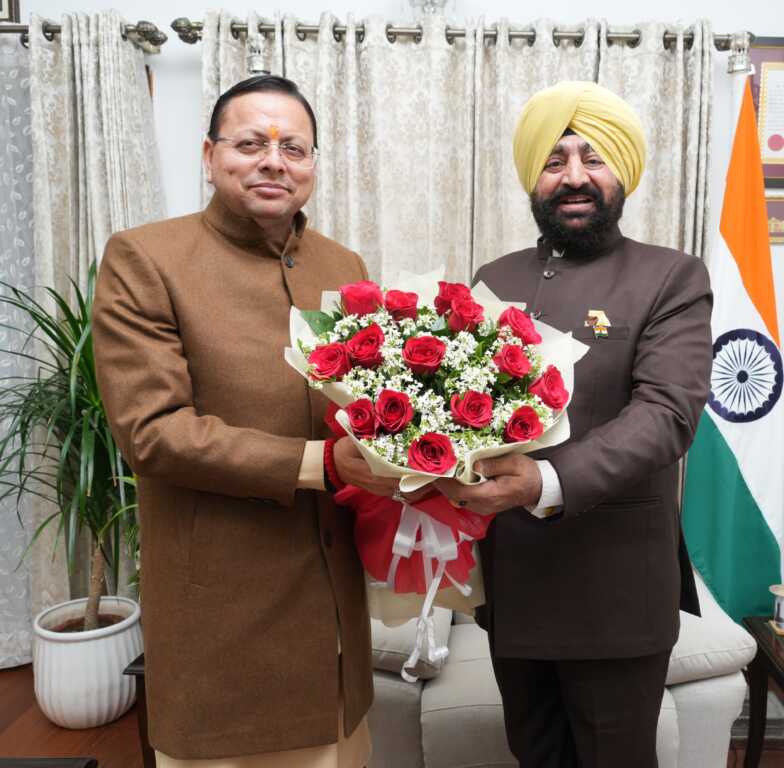 देहरादून: राज्यपाल लेफ्टिनेंट जनरल गुरमीत सिंह (से नि) से आज लोक भवन में मुख्यमंत्री पुष्कर सिंह धामी ने शिष्टाचार भेंट की। इस अवसर पर उन्होंने राज्य के विभिन्न विकासात्मक योजनाओं तथा समसामयिक विषयों पर विचार-विमर्श किया।